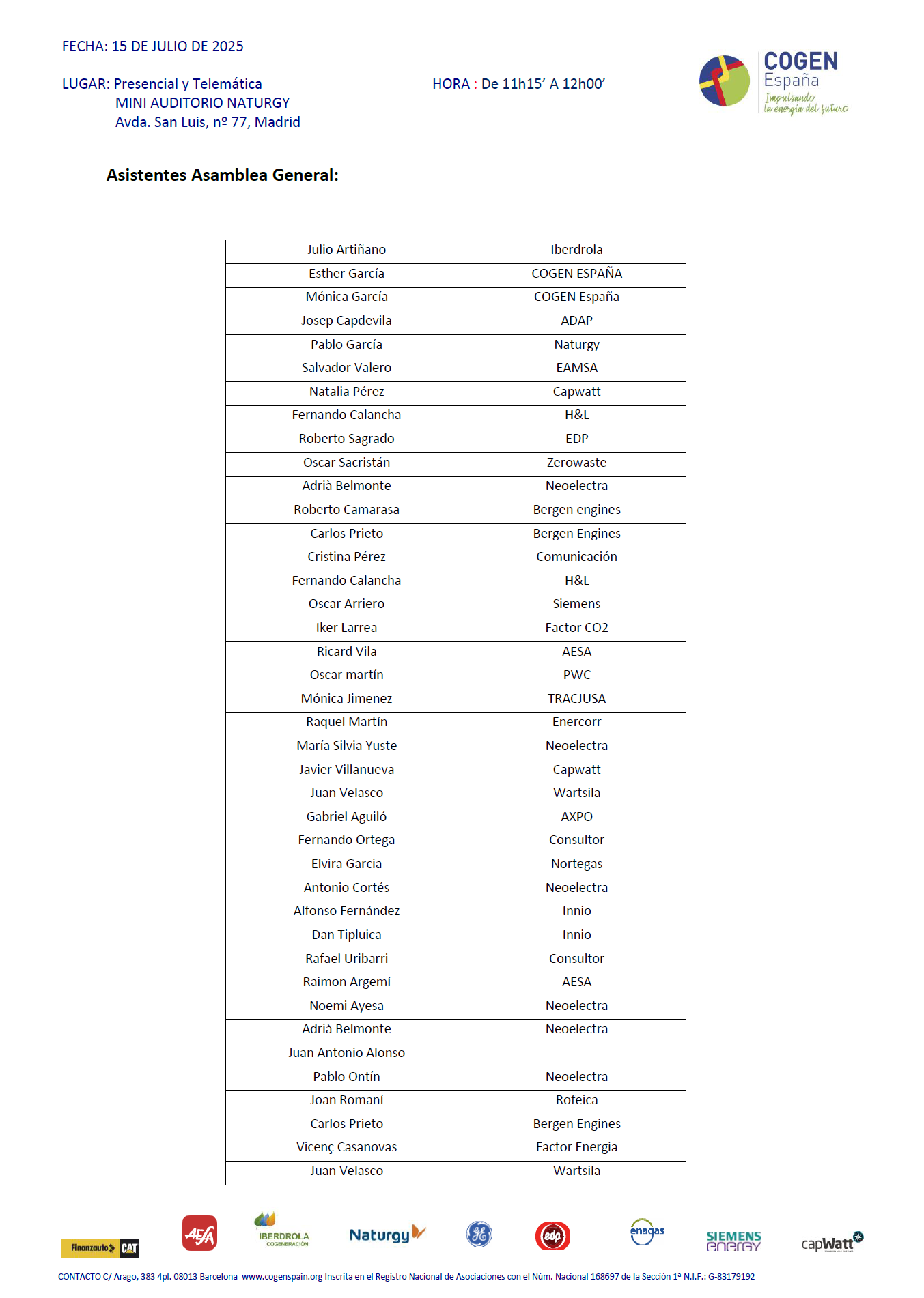 AG-25 Presentación – Asamblea General de Cogen España